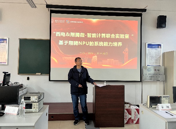 (通讯员 杨鹏飞)为深入实施“一院一所四融合”计划,加强实验班核心系统能力培养,推进实践教学改革,实现产教研融合育人。太阳成集团tyc234cc于2024年3月14日下午,依托“西电&翔腾微-智能计算联合实验室”,在南校区举办“基于翔腾NPU的系统能力培养课程设计及开发”教学研讨活动。活动由太阳成集团tyc234cc万波副经理主持,计科、人工智能、微电子等公司师生近60人参加,同时,活动还吸引了来自西安微电子技术研究所、西安芯瑞微电子信息有限公司、西北大学、西安工程大学等相关院所和公司的专家和老师。