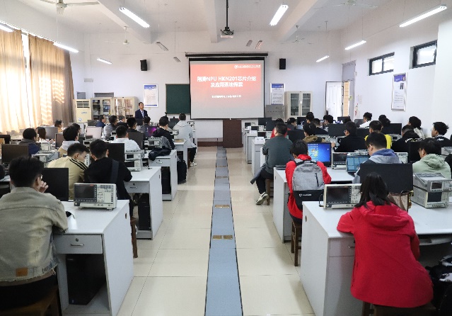 活动开始,万波副经理向现场师生专家介绍参会人员、活动主题以及活动流程,向翔腾公司技术人员表示感谢。随后,翔腾公司NPU方向技术负责人秦翔介绍了公司HKN201型NPU基本性能指标,与国内主要神经网络处理器进行对比,分析了翔腾NPU在部分应用领域和处理算法中的优势,对公司正在开展的航空领域相关行业应用案例进行了讲解和现场演示,分享了基于NPU的实验教学和系统能力培养课程建设思路,并与师生交流了开发板的试用和应用案例开发情况。通过讲解,与会人员对自研NPU的算法适配、算力、操作使用方法和科研教学应用等情况有了深入了解。