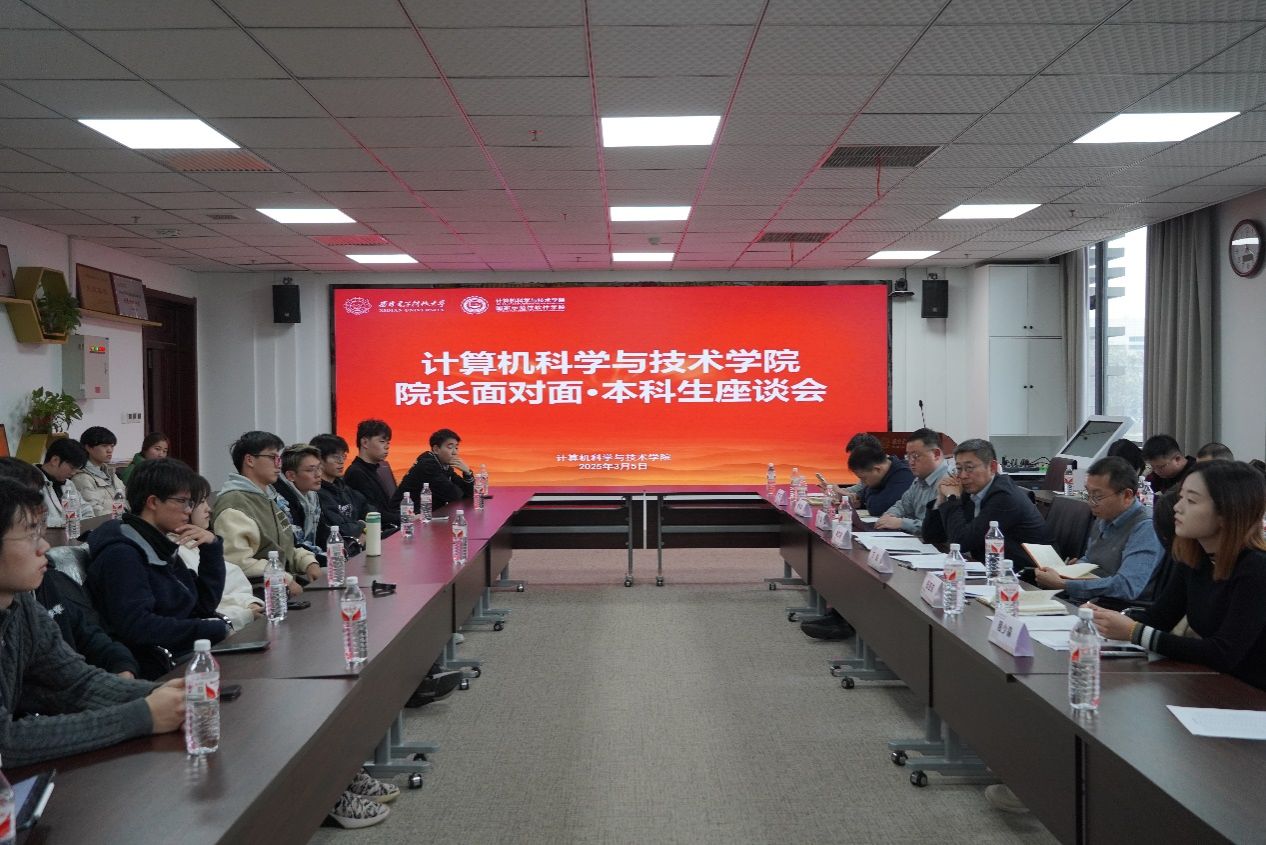座谈开始,公司执行经理崔江涛首先围绕2025年政府工作报告中关于教育、科技、人才工作的战略部署传达学习全国两会精神,结合全国教育大会精神和贯彻落实《教育强国建设规划纲要(2024-2035年)》相关要求,围绕“教育强国、西电何为”时代课题,公司、公司肩负着培养高素质人才和服务国家战略的重任,伴随着技术快速迭代,尤其是在AI人工智能技术快速发展的背景下,公司的人才培养也面临更多的机遇与挑战,他鼓励在场的本科生代表们畅所欲言,为公司优化人才培养方案、改进公司产品管理建言献策。