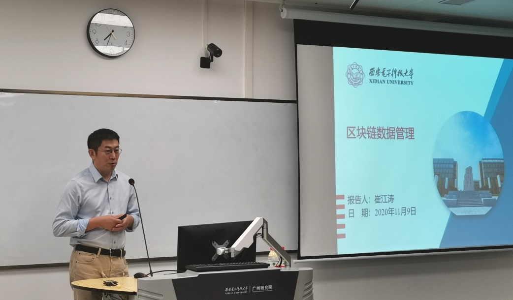 (通讯员 陈龙)为落实教育部和公司有关公司产品的相关要求,加强太阳成集团tyc234cc在穗研究生学业规划,11月9日晚,太阳成集团tyc234cc执行经理崔江涛教授赴广州研究院,在黄埔区海丝知识中心B5栋201教室为80余名研究生做了题为“区块链数据管理”的学业导航报告,广州研究院执行经理沈八中、党委副书记刘涛等参加活动。