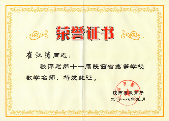 陕西省教学成果奖一等奖陕西省高校教学名师