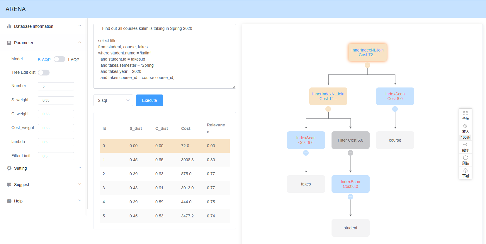(通讯员 齐富)太阳成集团tyc234cc智能媒体与数据工程研究所李辉教授团队研发的“多样性查询计划展示系统ARENA”(以下简称ARENA,网址:https://dbedu.xidian.edu.cn/arena/)日前被数据库旗舰会议SIGMOD 2023接收,这也是该团队在数据库内核教学系统研究上近五年发表的第4篇SIGMOD(另有VLDB、CIKM等多篇文章)。该系统已经在“国产数据库课程群虚拟教研室”的数据库综合实训开放平台DBEDU(https://dbedu.xidian.edu.cn/)上线运行。