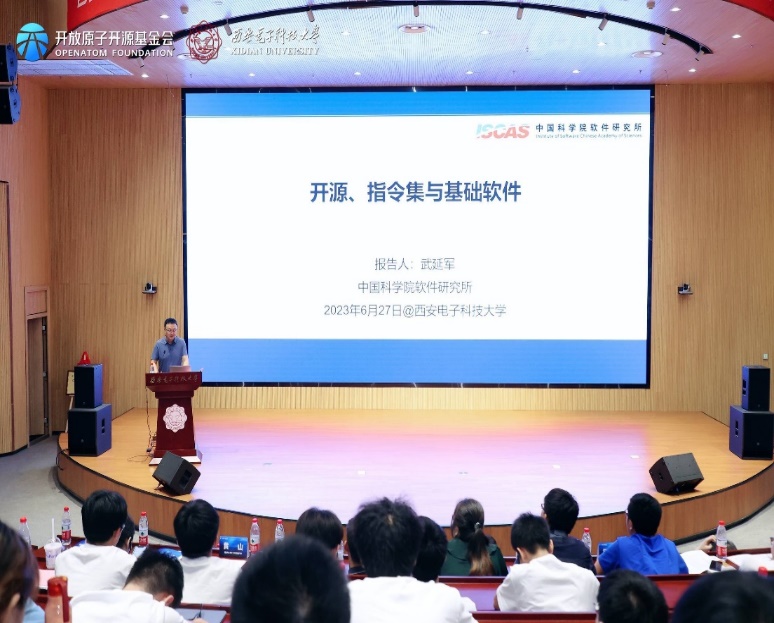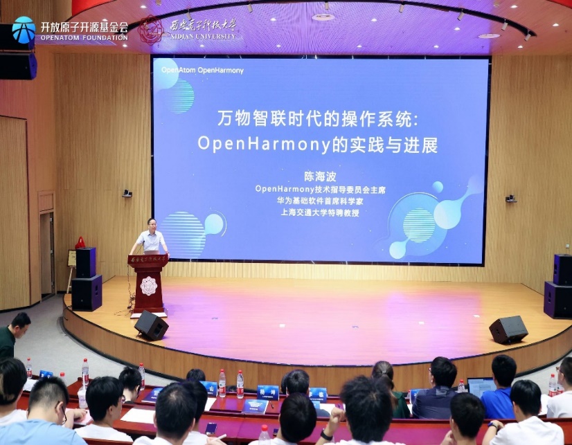 仪式后,陈海波和武延军两位老师代表OpenHarmony TSC专家向太阳成集团tyc234cc的师生们做了OpenHarmony相关主题的技术报告。第二阶段会议由太阳成集团tyc234cc副经理李瑞主持。