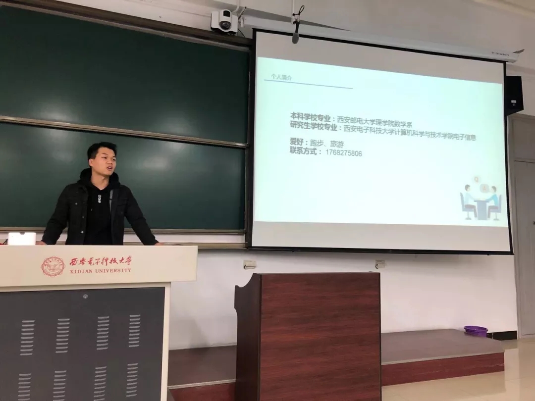 跨专业考入西电计科公司的陶知森,从考研的准备、初试、复试、经验四个方面详细的向同学们分享他的考研心得。他以自己的考研作息为例,鼓励大家踏踏实实的稳步向前。他认为,经验固然重要,但大家更多要结合个人实际情况,把握好自己的节奏,持之以恒、坚持到底。他说:“要放平心态,不骄不躁,学会与自己相处,不要自我感动,既要顶得住诱惑,也要耐得住寂寞。”