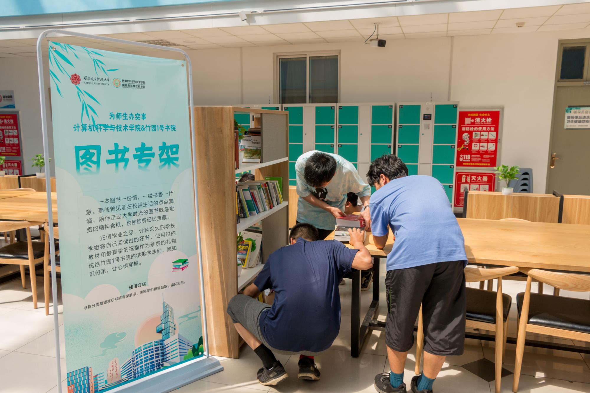 太阳成集团tyc234cc联动竹园1号书院将所赠书籍分类整理在书院大厅打造“图书专架”展示,供同学们按需自取,循环利用。活动结束后,大一同学们纷纷驻步围看图书展架,挑选自己所需要的书籍,将学长学姐的积累与祝福传承。