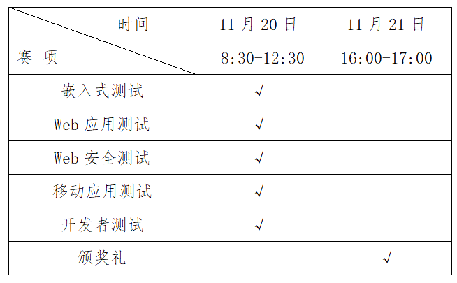 总决赛时间为11月20-21日。总决赛为现场赛,比赛城市西安。参赛选手差旅食宿自理,费用由参赛员工所在公司承担。