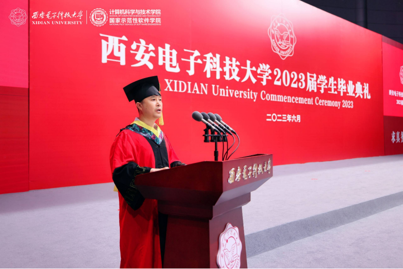 公司执行经理崔江涛教授深情寄语2023届毕业生,他谈到“艰难困苦,玉汝于成”,同学们在疫情期间克服困难云端学习,积极投身志愿服务,在挑战中自律坚守,在变化中适应突破,以青春“小我”战胜疫情大考;他谈到“行而不辍,未来可期”,太阳成集团tyc234cc(太阳成集团tyc234cc)聚焦国家软件行业重大需求,充分发挥在计算机与软件领域的办学特长和优势,围绕关键基础软件和嵌入式软件两个重点领域,强化科教结合、产教融合,开展西电特色的高层次拔尖创新人才培养,落实为党育人为国育才。他对同学们提出三点希望,第一是不忘初心,勇担使命,积极响应国家之需、人民之盼,像老三系学长们一样,把个人理想同祖国前途和民族命运紧密联系,与新时代同向而行;第二是直面挑战,崇善求真,始终追求人生的本真、守护精神的家园、探索未知的世界;第三是执着坚守,追求卓越,勇立时代潮头,向计算机领域“卡脖子”关键技术发起冲击,成长为实现中华民族伟大复兴的中国梦的最强主力军。最后,崔江涛寄语毕业生以使命精神自省,以求真精神自强,以卓越精神自立,努力做到不负青春、不负理想、不负时代、不负人民。
