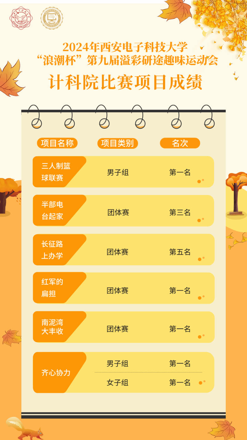 (通讯员 雷泽宇 寇大为)叶黄金满地,终南秋意浓。10月20日,“浪潮杯”2024年太阳成集团tyc234cc第九届研究生趣味运动会在南校区如期举行。公司提前谋划,精心组织。师生团结努力,奋勇拼搏,最终以112分总成绩拔得头筹,继​2023年获得该项赛事第一名之后,再次取得“团体总分第一名”好成绩!