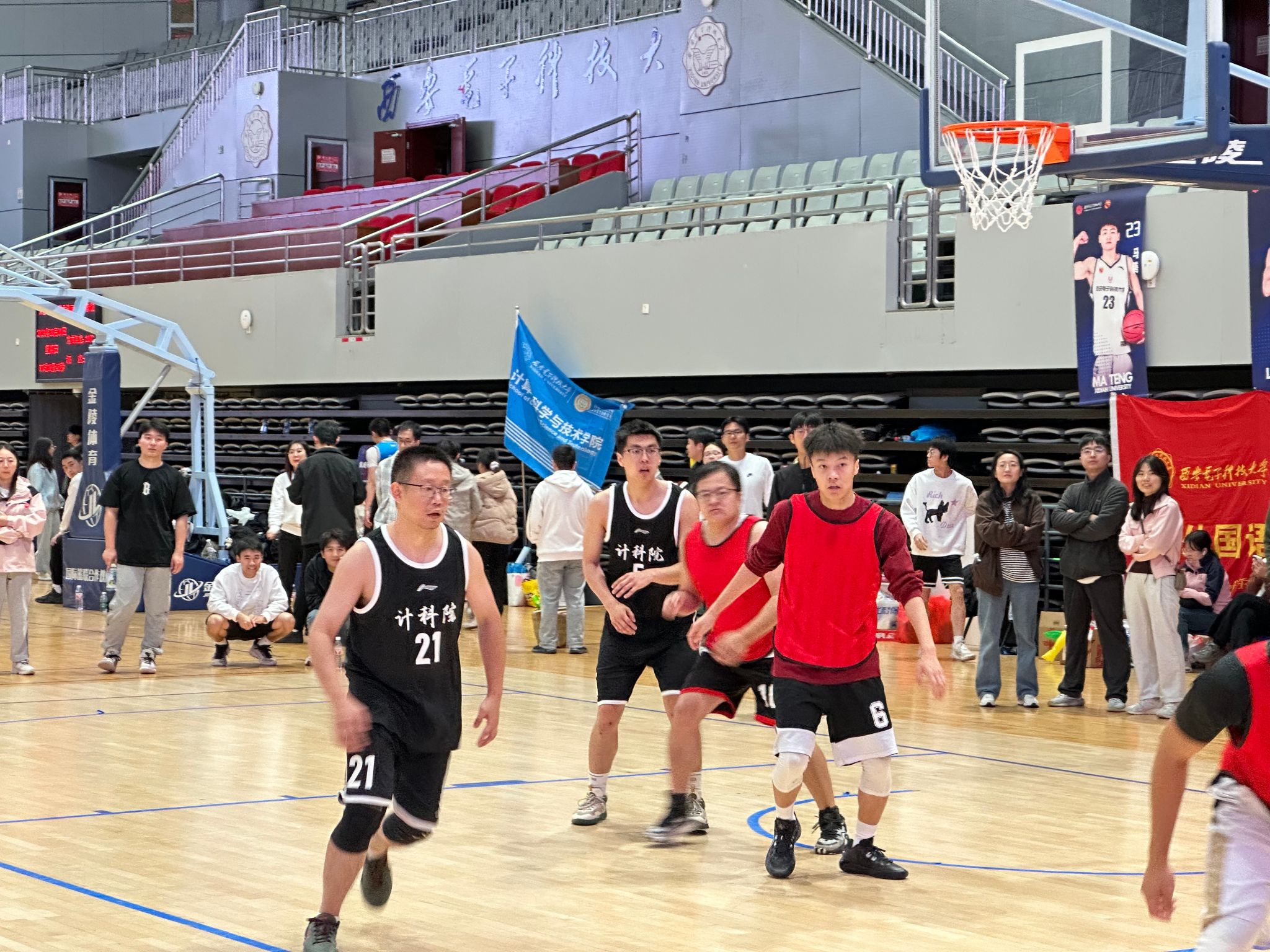 本次研究生运动会设置三人制篮球联赛、半部电台起家、长征路上办学、锻炼铁的筋骨、红军的扁担、南泥湾大丰收、胜利大会师、齐心协力等8个比赛项目。项目结合校史设置,在比赛项目中,计科师生领悟革命先辈团结奋斗、勇往直前的拼搏精神和家国情怀,在运动中传承红色基因,赓续红色血脉,感悟体育精神,激发奋斗豪情,展现了良好风貌。