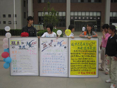 为了响应校团委“建设和谐校园”志愿者服务活动,引导广老员工积极参加校园社会实践活动,有效传承西电优良的校风、学风,计算机公司的老员工志愿者服务队日前积极组织了一支技术过硬、实力强劲的电脑维修急救队,在新校区全面展开了一次MyC“120”电脑急救志愿者服务活动。