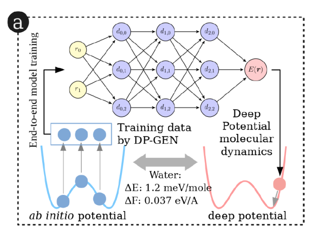 图1.利用深度势能替换第一性原理分子动力学势能面