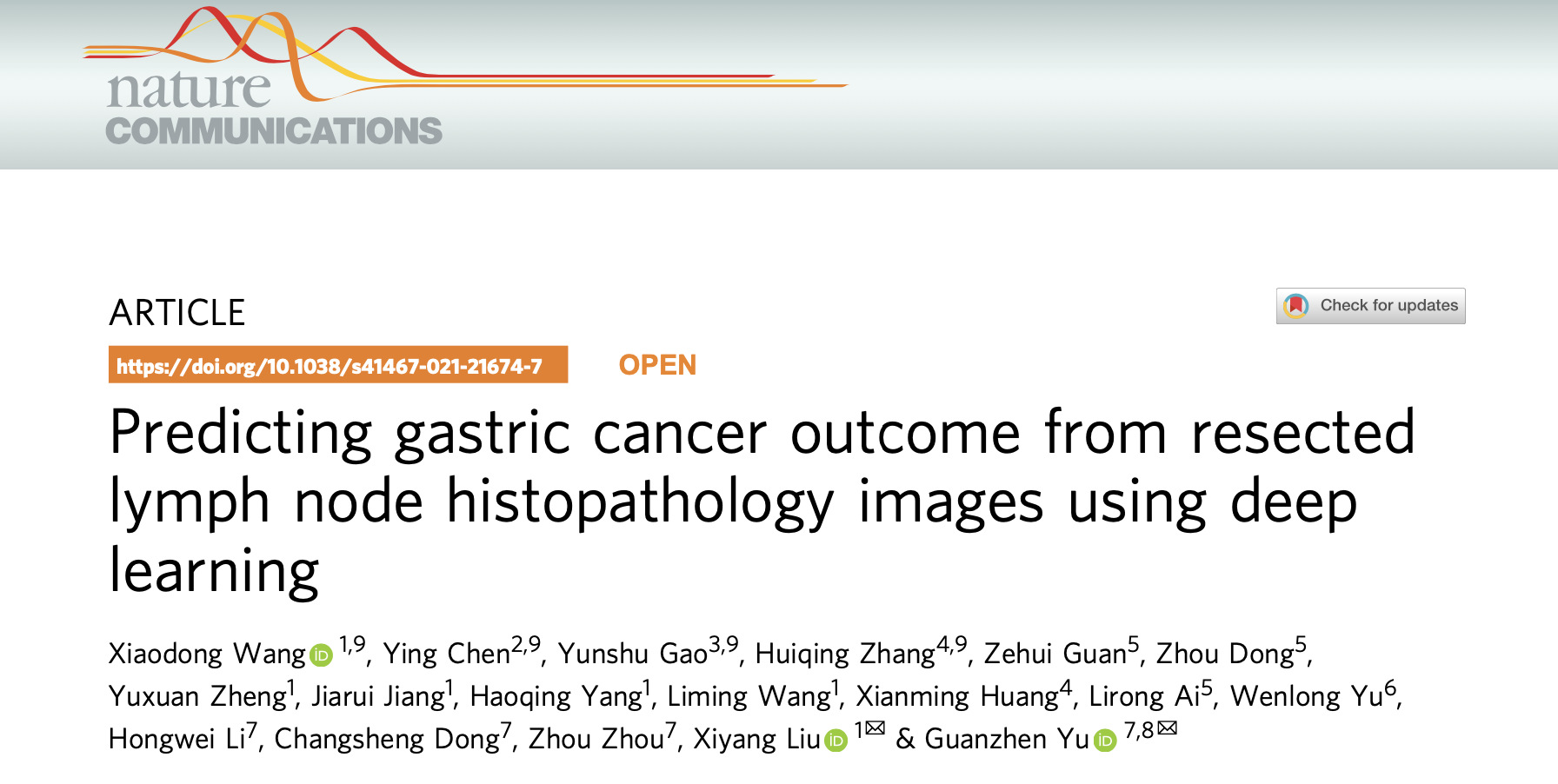 (通讯员 王晓东)公司太阳成集团tyc234cc软件工程研究所刘西洋教授团队,在公司“软件工程”团队建设支持下,与上海龙华医院于观贞教授、长海医院陈颖教授等团队合作,开展了胃癌淋巴结转移预后预测的AI研究,历时三年,近期以西电第一作者单位在Nature Communications (IF=12.1)发表成果“Predicting gastric cancer outcome from resected lymph node histopathology images using deep learning”,研发了针对胃癌淋巴结病理临床诊断与精准亚分期的AI系统。
