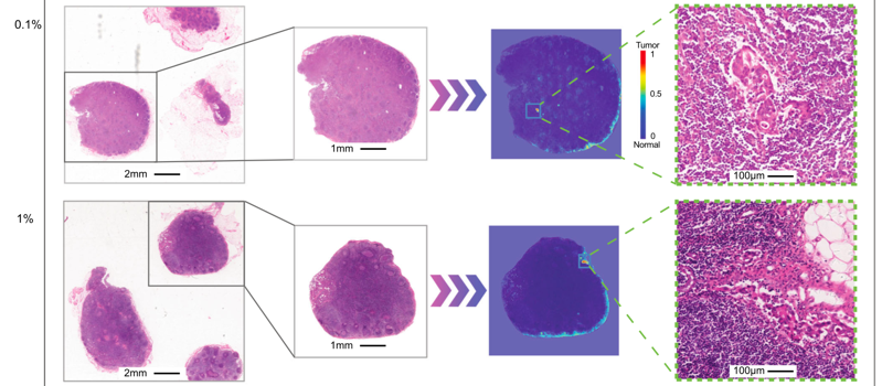 肿瘤淋巴结转移分析是基于TNM分期的癌症治疗预后估计的关键环节之一。目前,临床主要是采用目测检查淋巴结的组织切片方式,这个过程需要对每个患者检查至少十几个淋巴结,非常耗时且很容易因无法识别肿瘤淋巴结微转移而导致漏诊。此外,即使在同一N分期中,患者的预后也存在巨大差异。实际上,病理分析是肿瘤疾病诊断的“金标准”,病理分析对患者的预后分型分期至关重要。然而,由于人眼观察的局限性,病理图像体积巨大,这些潜在信息一直未被充分挖掘和量化。病理数字化扫描技术与人工智能的发展,为病理信息的充分挖掘提供了强有力的技术手段。