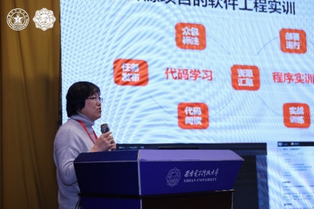金芝围绕“软件需求工程研究与实践”,系统性地介绍了需求工程教学的主要内容,还分享了如何选择以及结合不同特征的案例展示方法。李宣东带来了题为“软件工程专业教育问题的若干思考”的报告,从若干不同的视角探讨了软件工程专业教育的本质问题。毛新军的关注点在于“升级软件工程课程教学”,介绍了如何通过借鉴当前软件工程的先进方法,以形成软件工程课程教学的生态。刘强讨论了“面向新工科的软件工程实训体系与平台建设”,结合国家级新工科研究与实践项目“面向新工科的软件工程实训体系与平台建设”的研究和实践,介绍了能力模型、实训体系、实践平台等三个方面的工作成果。宋胜利带来了“产教融合培养特色化软件人才的思考”,重点介绍了如何通过搭建校企协同创新育人平台,实现校企共建团队队伍、特色课程、特色教材和各类实践教学资源,以满足新时代国家发展需要的特色化软件人才。王强探讨了“产业需求与职业能力驱动的软件人才实践能力创新训练模式”,介绍了依托职业能力分析大数据服务平台,实现全过程贯彻专业工程能力、职业素养能力和创新创业能力的培养。
