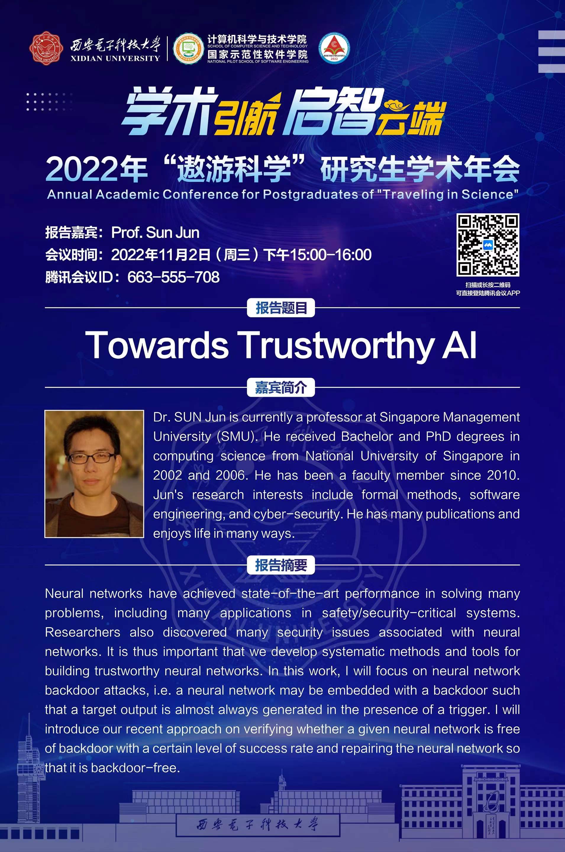 姓名 Prof.Sun Jun 时间 2022年11月2日(周三)15:00-16:00