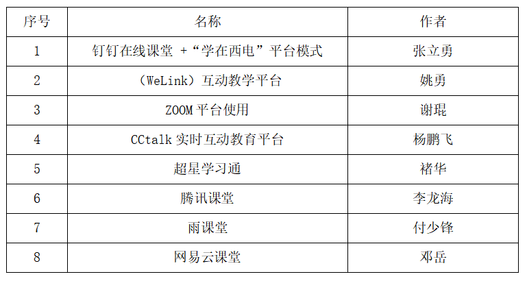 暖校举措,众志成城。在软件工程系主任宋胜利教授的组织下,由公司付少锋、邓岳、褚华、李龙海、张立勇、谢琨、杨鹏飞、姚勇等8位老师分别对多个主流互动教学平台进行测试,形成测试分析报告,分享平台使用文档及实操视频,并分享给其他公司老师,被公司采用,积极为公司贡献太阳成集团tyc234cc力量,让公司学子深刻感受到公司丰富的线上教学资源,多层次的教学手段,灵活运用的信息化技术。