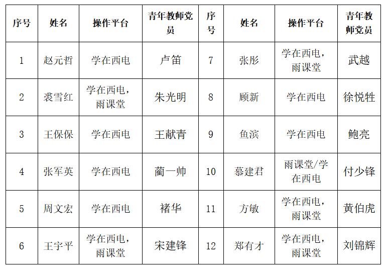 暖师计划,党员先行。充分发挥教师党员先锋岗作用,针对部分教授对信息化系统熟悉度不够的问题,征集了12位青年教师,建立起一对一的支持帮助联系纽带,帮助教授们尽快掌握相关平台的使用,确保了全体教师快速“线上”上岗。