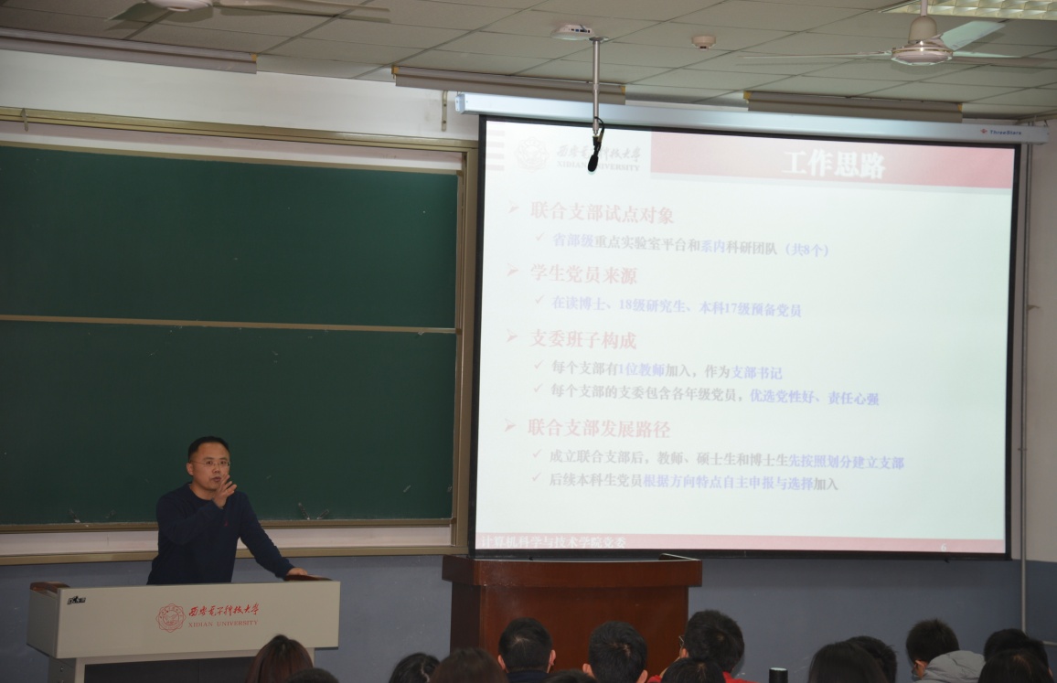 据悉,计算机科学与技术公司党委在前期深入调研的基础上,针对基层党建弱化等问题,认真领会教育部有关优化高公司党支部设置的有关精神,积极探索,精心制定了本硕博师联合党支部设置方案。经公司党委研究同意,以全体博士生党员、2018级全日制硕士生党员、2017级本科生党员为主体,以各教职工党支部推荐优秀青年教师党员为党支部书记,依托实验室、项目组,成立8个本硕博师党支部。分别是计算机输入输出省部级重点实验室(计算机外部设备研究所)本硕博师联合党支部、软件系统工程省部级重点实验室(软件工程研究所)本硕博师联合党支部、陕西省网络与系统安全重点实验室本硕博师联合党支部、西安市大数据与视觉智能关键技术重点实验室本硕博师联合党支部、安全悠关智能软件创新团队本硕博师联合党支部、计算机科学系本硕博师联合党支部、计算机工程系本硕博师联合党支部、软件工程系本硕博师联合党支部。