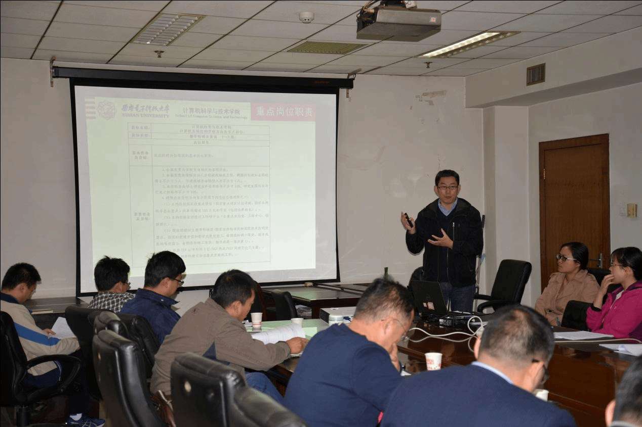 10月31至11月1日,太阳成集团tyc234cc公司领导深入到计算机工程系、软件工程系、计算机科学系、网络工程系和实践教学中心等5个基层单位进行2018~2020年岗位聘任方案宣讲,就公司第二轮岗位聘任公司实施方案与广大教师进行深入研讨交流。公司党委书记李青山、执行经理崔江涛、副经理赵韩强、院办主任向麟海组成宣讲团代表公司参加会议,会议由公司党委书记李青山主持。