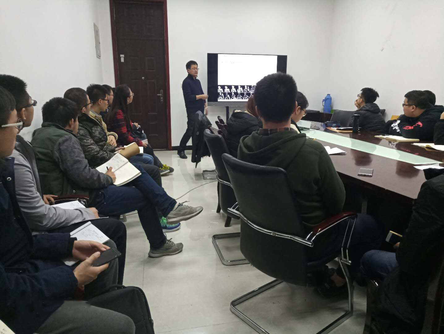 11月28日下午,计算机公司第二期“求是历程,对话教授”活动在主楼四区107会议室成功举行,此次活动邀请到了公司计算机视觉与网络智能团队的苗启广教授,并为同学们带来了题为“基于三维深度神经网络的手势识别”的精彩讲座。 苗启广用手语对话等作为例子引入,建立了描述基于三维深度神经网络的手势识别的理论模型,介绍了模型逐步进行优化的过程,达到了较高的准确率。讲座期间,同学们踊跃发言并向教授提问,苗启广都一一进行详细的解答,加深了同学们的认识和理解。苗启广在报告结束时将“有目标的人在奔跑,无目标的人在流浪”这句话送给了在场同学勉励大家在研究生期间要有明确的目标与规划。