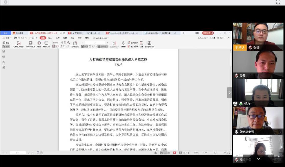最后,杨力对本次线上活动进行了总结。在疫情防控期间,党员的思想政治学习要不断线进行,党员同志可借助“学习强国”等网络学习平台,不断提高理论水平,增强自身政治觉悟,积极践行“不忘初心、牢记使命”主题教育精神。