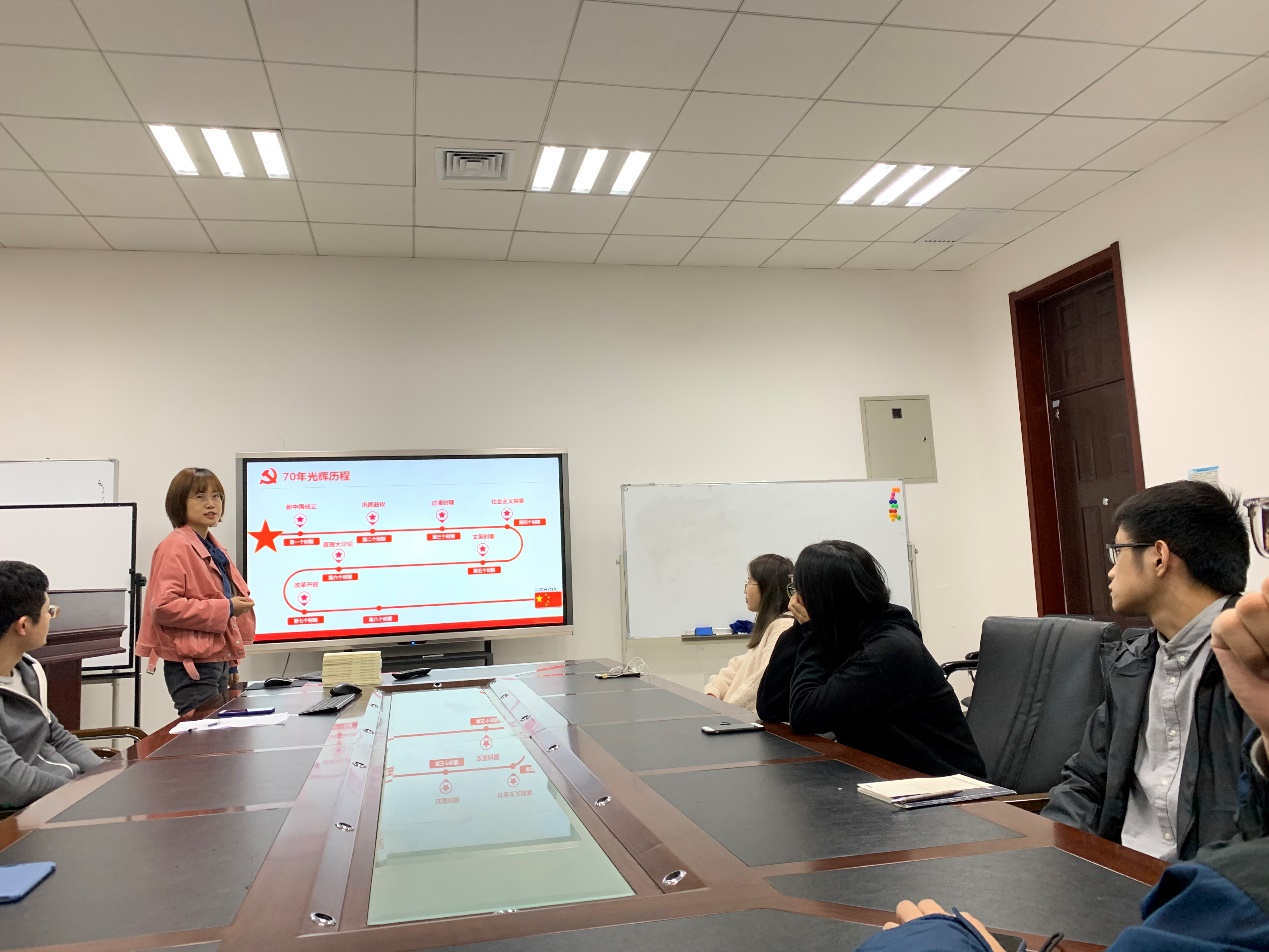 接着,由郭佳琦同志以“我和我的祖国”为主题为支部成员做相关主题教育,本次主题教育主要包括以下四部分内容。