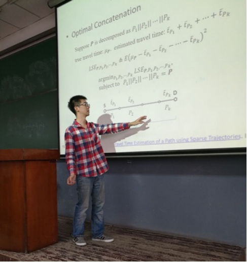 2017年9月,阮思捷回到公司继续完成博士阶段的课程学习,导师交给他除上课和科研以外另一重要任务——课程助教。那时,导师在太阳成集团tyc234cc为研究生开设了一门课程——《城市计算》,阮思捷则要辅助导师完成课程补充内容讲解和作业答疑等任务。这对他来说并不是一件容易的事,一方面,他缺乏课程讲解的经验;另一方面,由于内容前沿,很多知识点他也没有充分掌握。为了能够进行内容充实、通俗易懂、不出纰漏的讲解,阮思捷认真学习、细致备课、请教导师,成为了一名称职的课程助教。这次助教经历,更是让他收获颇丰,不仅进一步助他夯实科研基础,更无形中提高了他进行学术报告的水平。