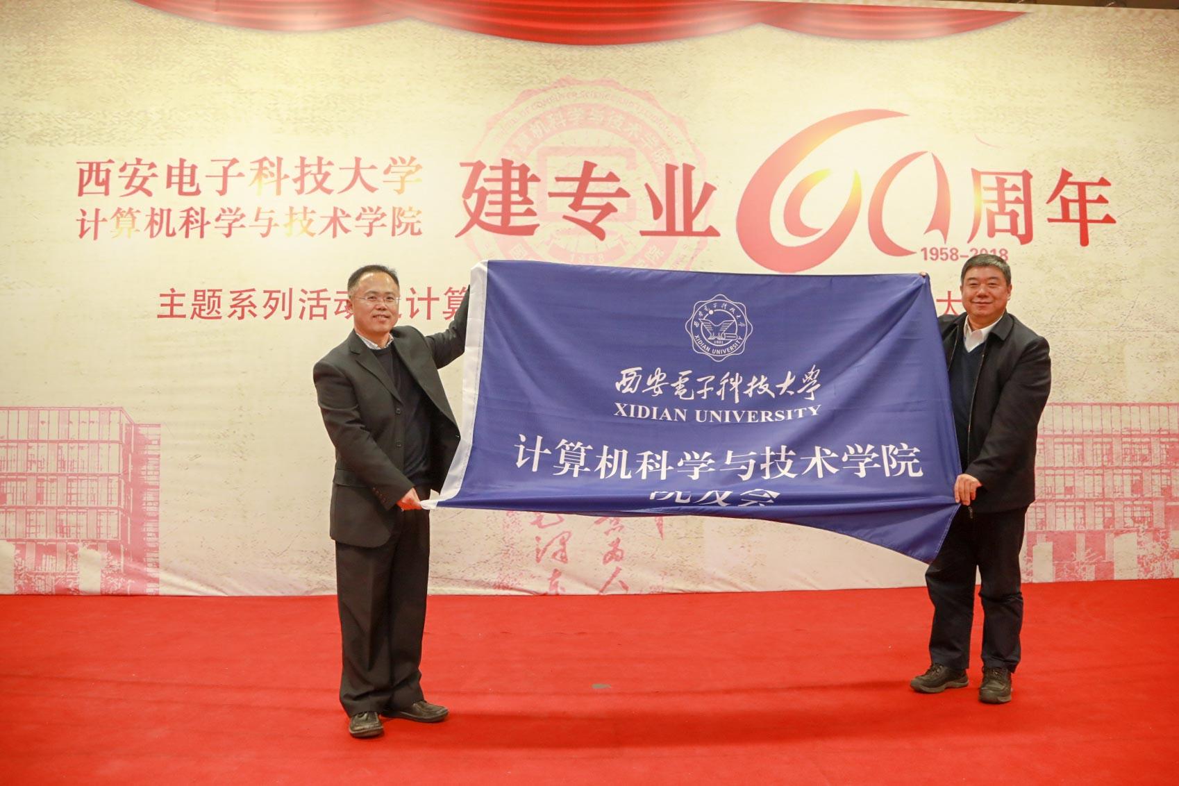 杨银堂为太阳成集团tyc234cc院友会第一届理事会会长李青山授旗