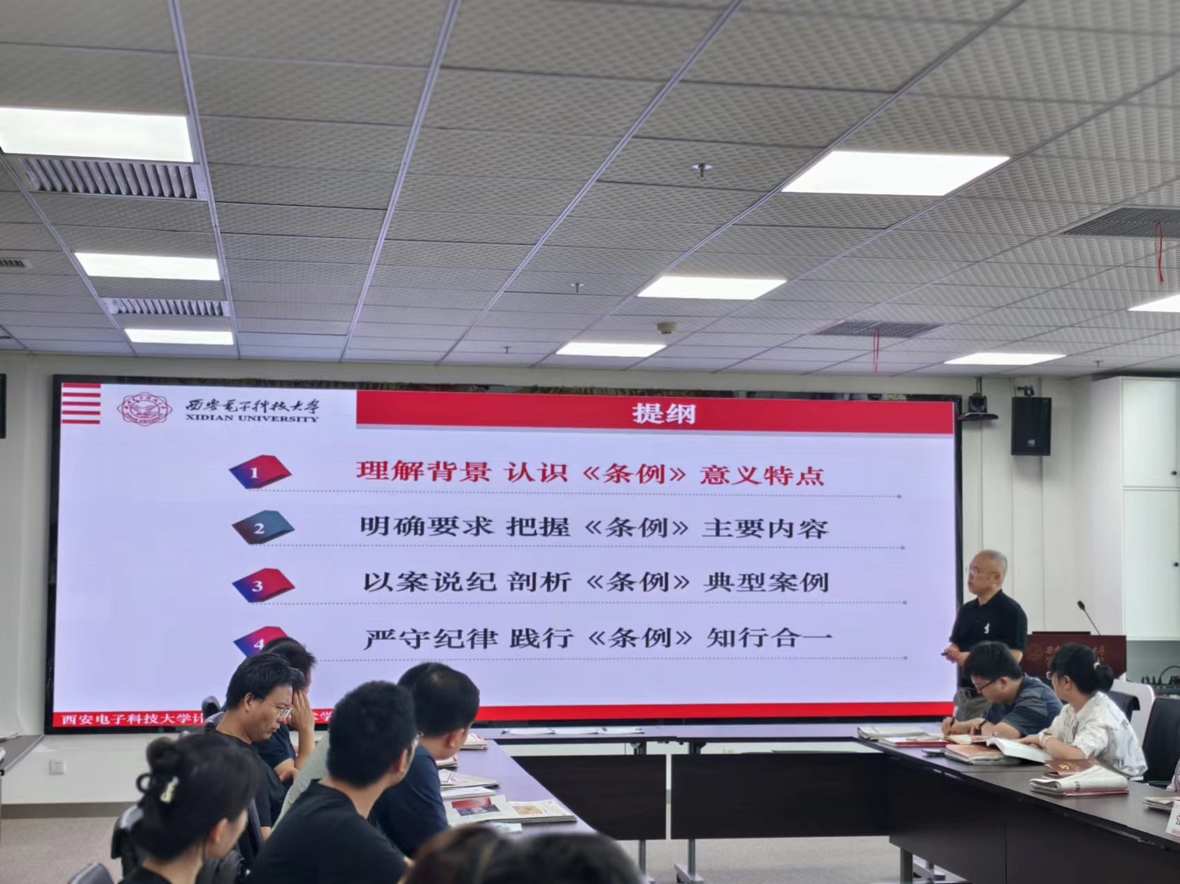 (通讯员 冯雨晴)为深入学习贯彻习近平总书记关于党纪学习教育的重要讲话和重要指示精神,深化公司师生党员的纪律意识和廉洁自律观念,6月25日下午,计算机科学与技术公司党委书记李青山教授在南校区网安大楼A1-223报告厅讲授党纪学习教育专题党课。公司党委副书记、纪委书记张莹莹,党委副书记黄成龙,基层党支部书记、支委和联系党支部师生党员代表等40余人参会。