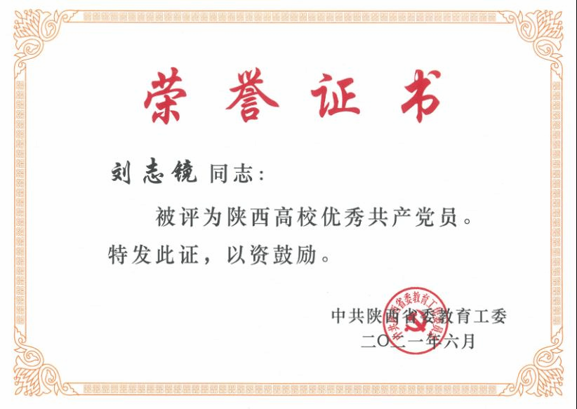 (通讯员 同榛)7月8日,中共陕西省委教育工委召开陕西高校学习贯彻习近平总书记“七一”重要讲话精神暨“两优一先”表彰大会。公司刘志镜教授获“陕西高校优秀共产党员”称号。