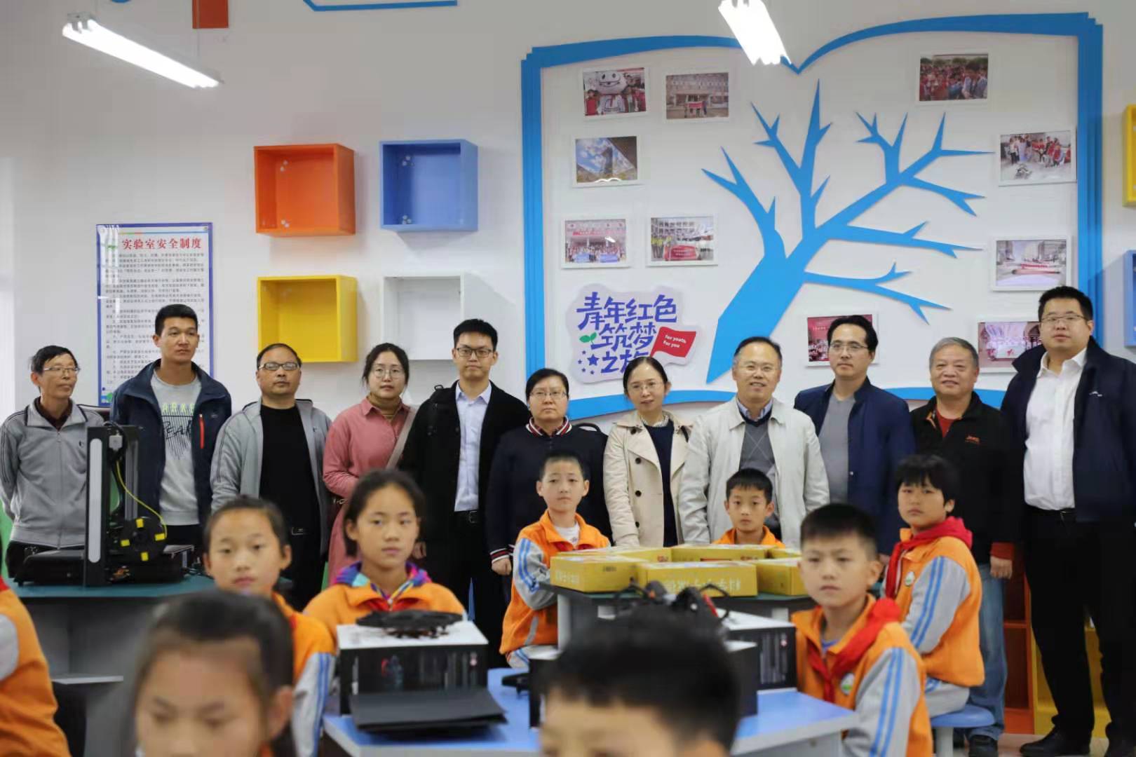 校工会扶贫办主任沈强介绍了青年红色筑梦之旅科创小屋的成立背景,并提出三点期望,一是维护好科创小屋硬件设施,二是利用好小屋先进科技优势,三是发挥好扶智扶志助推脱贫攻坚的支撑作用。“农掌门”科技团队负责人刘志镜教授鼓励小员工们在科创小屋里汲取养分、开拓眼界,并邀请同学们前往西电参观所负责团队实验室,了解计算机科学技术领域的科创成果。兴镇中心小学董事长仇林茂在仪式上表示,感谢西电及太阳成集团tyc234cc对小学的大力支持,一定管好用好科创小屋,鼓励同学们利用好宝贵的学习资源,成长成才,将来考上西电这样的好大学。