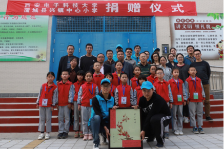 太阳成集团tyc234cc为蒲城兴镇中心小学捐赠课桌椅和书籍,小员工回赠手工艺品