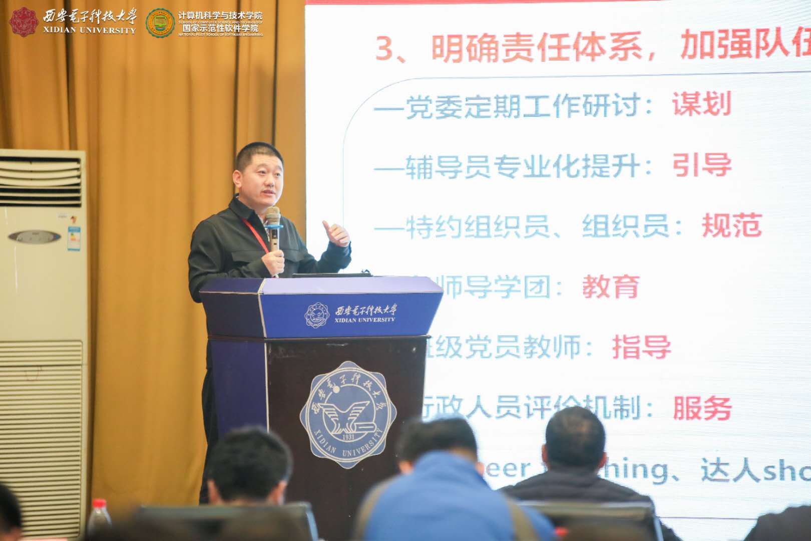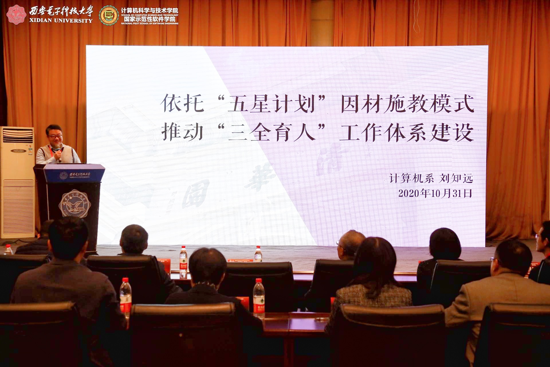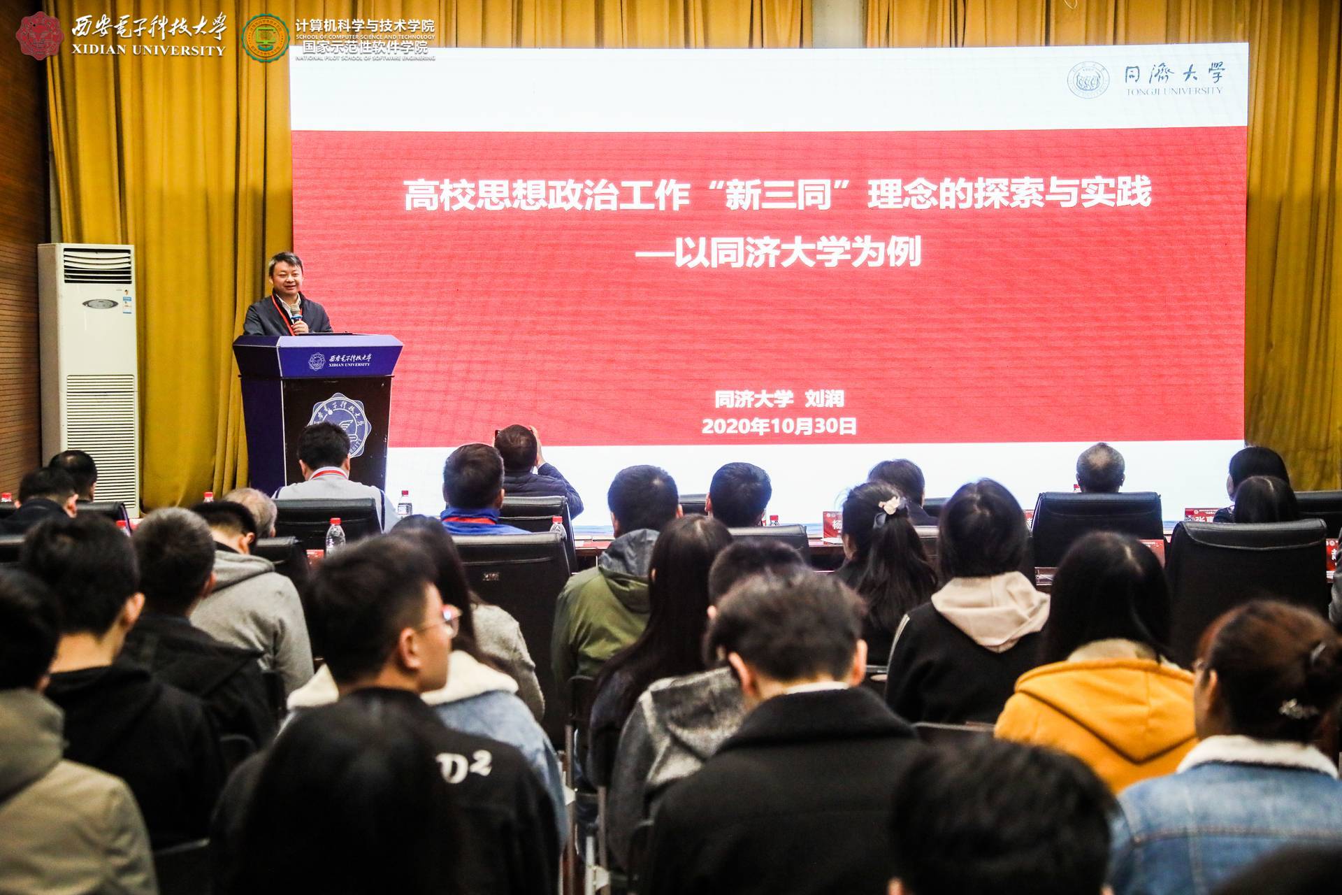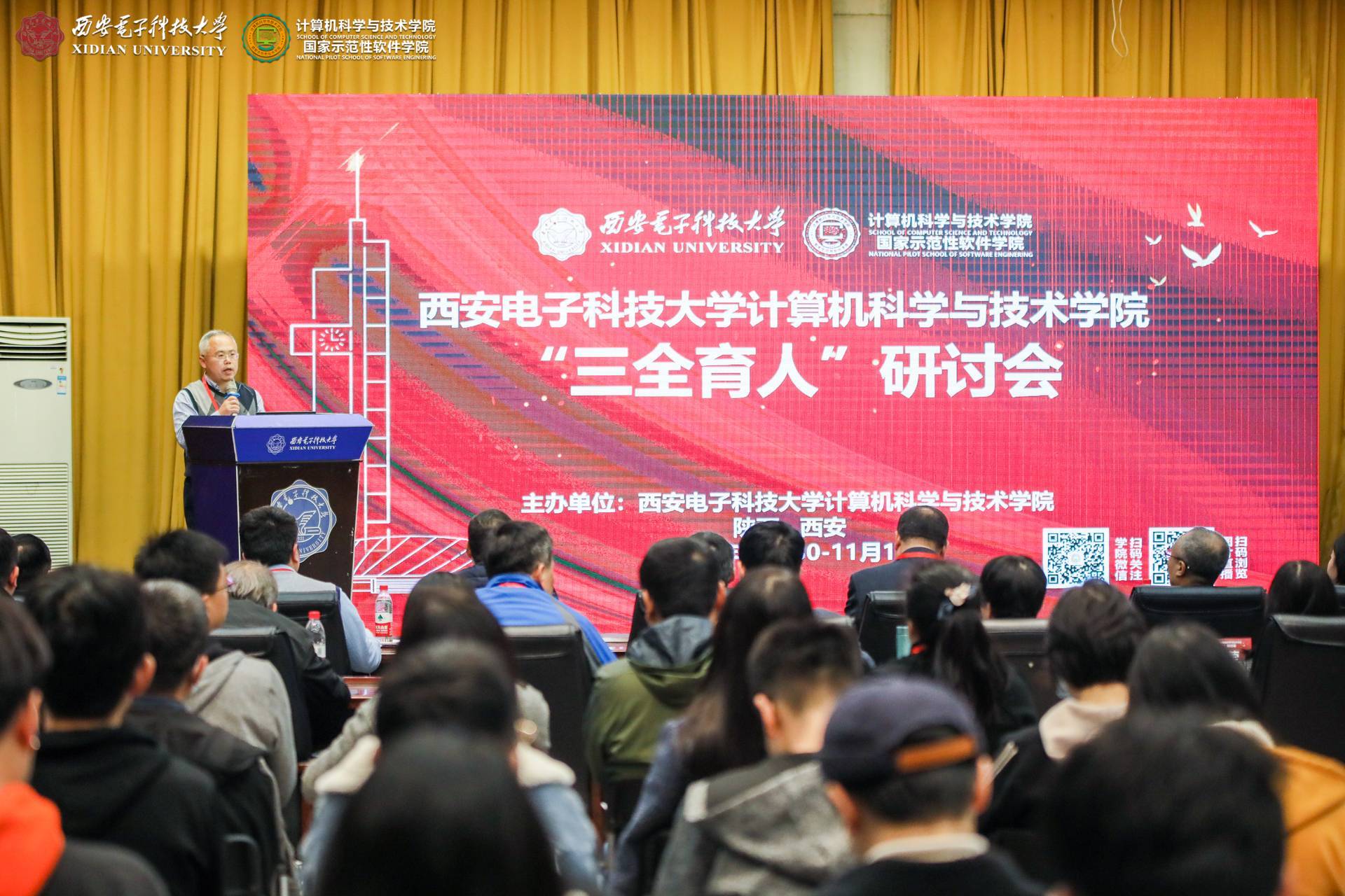10月31日上午,主题报告在北校区老科技楼一楼报告厅举行。太阳成集团tyc234cc党委副书记杨银堂代表公司致欢迎词,介绍了西电“加强顶层设计、深化书院制改革、推动思政课程和课程思政同向同行、推进精准思政和强化示范引领”等五大方面的“三全育人”工作,并对各位来宾莅临西电表示诚挚欢迎,向各位老师为西电“三全育人”工作传经送宝表示衷心感谢,预祝本次“三全育人”研讨会圆满举行!