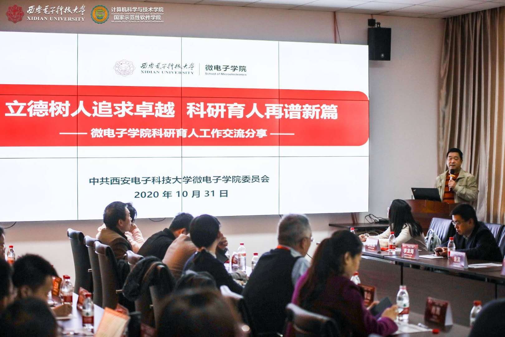 10月31日下午,圆桌论坛在北校区主楼二区319会议室召开,公司副经理宋胜利主持。微电子公司是省级标杆院系培育创建单位,公司党委书记黄伟以“立德树人追求卓越,科研育人再谱新篇”为题,介绍了公司在解决“卡脖子”关键问题和培养科教融合创新人才等方面的科研育人具体举措和工作成效;本科生院常务副经理肖嵩详细介绍了西电在深化课程思政、优化课程体系、加强教学管理和建立典型示范等方面的课程育人实践和将解困与育人相结合的资助育人质量提升计划实施方案,持续深化课程育人与资助育人实效。空间科学与技术公司是教育部“三全育人”综合改革试点单位,厚植红色家国情怀和钱学森航天精神,党委副书记卢毅着重分享了公司在课程、网络、文化、实践、科研等五个育人维度的具体举措。太阳成集团tyc234cc是公司“三全育人”综合改革试点单位,公司党委书记李青山详细介绍了公司本硕博师联合党支部协同育人和发挥归国学人优势推进产业科技扶贫等特色做法。