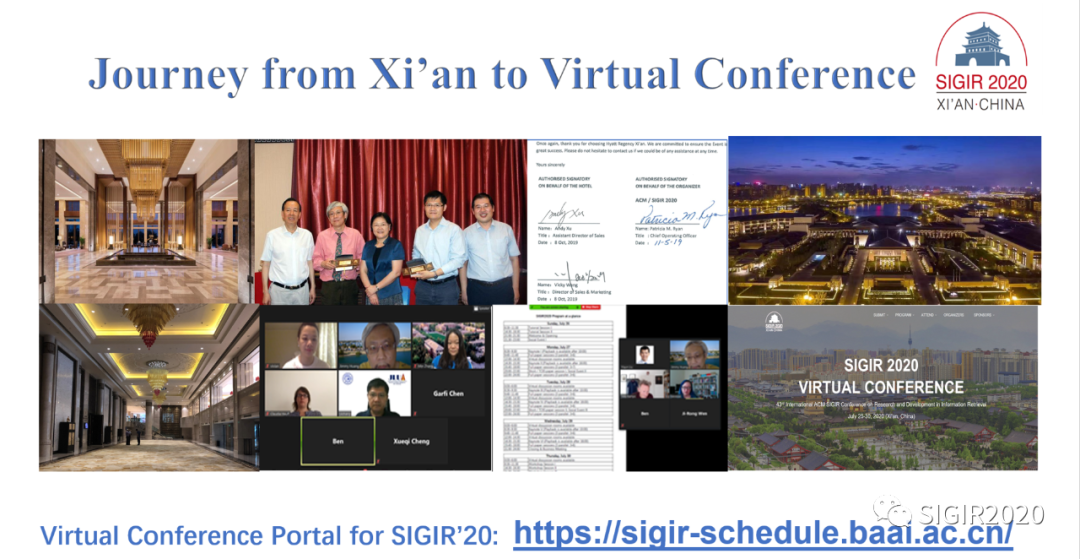 本次会议由中国科公司计算所程学旗研究员、吉林大学常毅教授和加拿大约克大学Jimmy Huang教授担任大会主席,太阳成集团tyc234cc原副董事长、现重庆邮电大学董事长高新波教授担任LocalChair,太阳成集团tyc234cc苗启广教授负责了大会与公司的相关交流协调以及大会筹备相关事宜。由于受疫情影响,大会采用线上会议模式,并面向全球直播。大会共收到论文投稿1180篇,共录取340篇。其中,长文投稿555篇,最终录用147篇,录用率约26%;短文投稿507篇,最终录用152篇,录取率约30%。除此之外共有1,516名学者注册了本次大会,ACM SIGIR 2020成为SIGIR有史以来投稿量最高、注册人数最多的一届学术盛会。