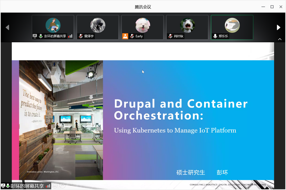 博士研究生肖叶秋同学从不同类型通信卫星的介绍引入,以物理层安全视角下的非对地静止卫星系统的安全通信为主题,通过大量的仿真验证,确定了非静止轨道卫星系统安全通信的两大性能指标:安全容量和安全中断概率的闭合表达式。硕士研究生彭环同学以物联网产业的不断发展使得功能逐渐复杂为切入点,提到了微服务带来的性能、灵活性以及健壮性的提高,介绍了团队在kubernetes中存在的问题提出相应的解决思路,更好的实现了物联网平台的自动化部署、自动扩容、维护等功能。在问答环节,线上听众积极提问,与报告人开展了积极有效的互动交流。