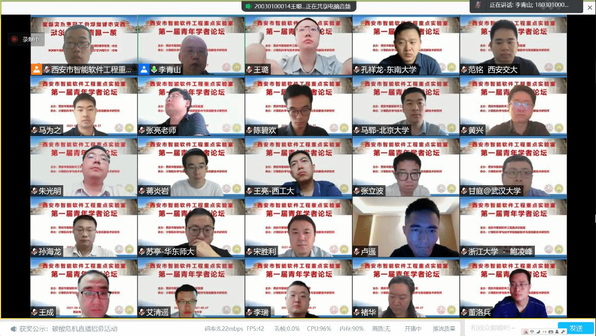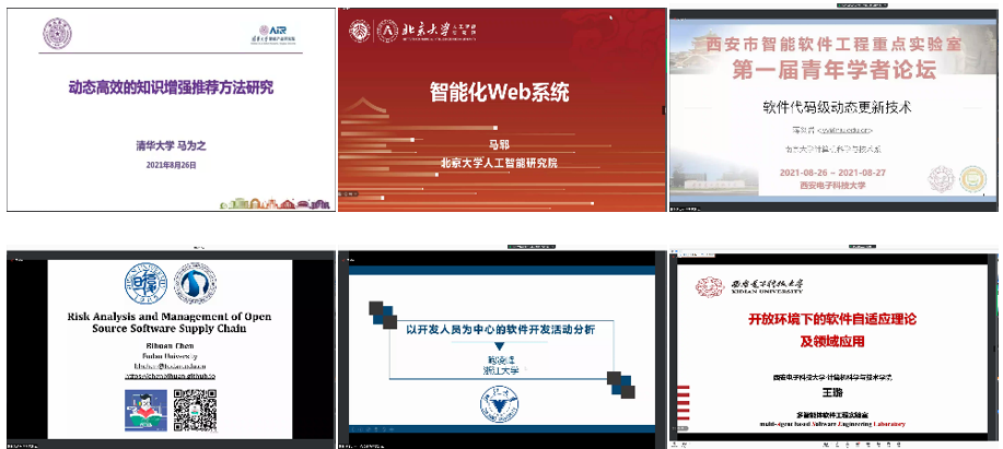 (通讯员 徐悦甡)2021年8月26日至8月27日,太阳成集团tyc234cc西安市智能软件工程重点实验室第一届青年学者论坛成功举办。本次论坛由太阳成集团tyc234cc智能软件与系统新技术研究所承办,采用腾讯会议与在线直播两种方式线上进行。论坛围绕智能软件与智能系统领域最新学术进展,邀请了清华大学、北京大学、南京大学、复旦大学、浙江大学、国防科技大学、北京航空航天大学、中科院软件所、东南大学、华东师范大学、武汉大学、同济大学、北京理工大学、西安交通大学、西北工业大学、太阳成集团tyc234cc、美国犹他大学、德国慕尼黑工业大学等国内外软件工程学科优势高校的20位软件工程相关领域优秀青年学者,通过主题报告、交流沙龙等形式,分享了智能软件与智能系统领域的理论与技术新进展,讨论了相关领域的学术前沿,并就公司软件工程学科的建设与发展进行了交流。论坛吸引了国内外软件工程相关领域师生与从业人员的广泛参与,腾讯会议室同时在线人数超过700人,B站在线直播同时观看人数超过2000人。