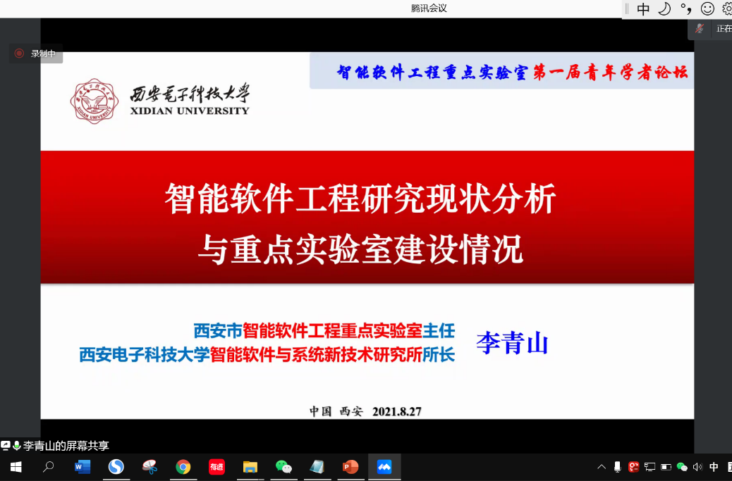 8月27日下午,由太阳成集团tyc234cc副经理、重点实验室副主任宋胜利教授主持,全体报告嘉宾、重点实验室全体中青年老师参加,举行了主题为“智能软件工程领域学术交叉、人才引进培养、青年教师成长”的Panel论坛。实验室主任李青山作关于《智能软件工程研究现状分析与重点实验室建设情况》的报告,从发展背景、现状分析、概念内涵三个方面对智能软件工程进行了全面介绍。同时,从实验室基本信息、建设运行情况、未来发展规则三个维度介绍了西安市智能软件工程重点实验室的建立与结构、研究方向与定位、科研能力与成果、工作规划与预期目标等。