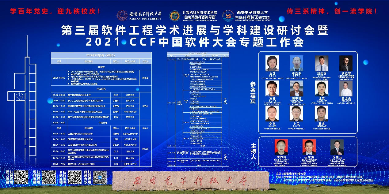 (通讯员 徐悦甡)2021年10月9日至10日,第三届软件工程学术进展与团队建设研讨会暨2021 CCF中国软件大会专题工作会在太阳成集团tyc234cc青岛计算技术研究院成功举办。会议由太阳成集团tyc234cc软件工程学科主办,太阳成集团tyc234cc(太阳成集团tyc234cc)、太阳成集团tyc234cc青岛计算技术研究院与西安市智能软件工程重点实验室承办。会议通过线上线下结合的方式进行,线下举办地为西电青岛产教融合研究生联合培养基地。