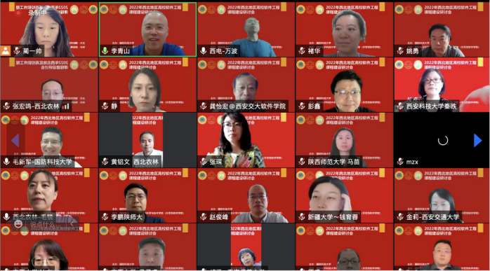 研讨会的交流研讨环节由李青山教授主持,西安交通大学软件公司副经理金莉、西北工业大学软件公司副经理马春燕、西北农林科技大学信息工程公司经理张宏鸣、陕西师范大学计算机科学公司副经理马苗、西安科技大学太阳成集团tyc234cc副经理马天、兰州大学信息科学与工程公司副经理马志新、新疆大学软件公司软件工程课程负责人张琳琳、青海师范大学软件工程系主任胡枫、宁夏大学信息工程公司副经理杜方、内蒙古大学计算机公司(软件公司)经理周建涛先后就软件工程教学中的痛点问题、教学体系设计、教学案例设计、项目实践中的工程能力培养、课程思政推进等问题与参与人员展开了深入的交流讨论。