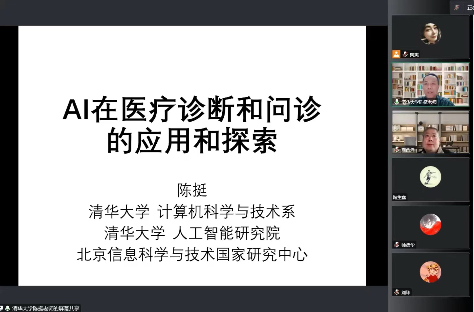 10月30日上午,陈挺教授以“AI在医疗诊断和问诊中的应用与探索”为主题作学术报告。他讲述了课题组在人工智能医疗方面的研究成果,包括新冠肺炎CT诊断(Cell 2020),x-Ray分析(Nature BioM Eng 2021),眼底影像诊断糖尿病和肾病(Nature BioM Eng 2021),心电图判读(AIIM 2022),多模态医疗数据融合(JBHI 2021),医疗问诊(WWW 2022,KDD 2022)等。报告会上与参会师生展开讨论,学术氛围浓郁,学术思想碰撞与交流频繁。