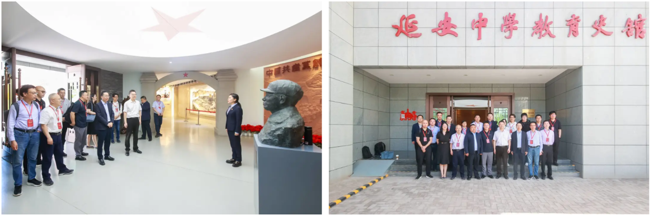 在延安中学董事长郭博的陪同下,与参会嘉宾沿着习近平总书记2022年10月26日进校参观时的足迹参观了延安中公司史馆,感受中国共产党创办的第一所中学辉煌的历史和厚重的文化。延安中学是在老一辈无产阶级革命家、教育家、党和国家领导同志亲切关怀和精心培育下成长起来的,毛泽东主席题词“光明在前”,周恩来总理题词“艰苦奋斗,努力学习”,习近平总书记亲切嘱托:“坚持用延安精神教书育人,办好人民满意的教育,弘扬革命传统,培育时代新人”。通过参观,与会嘉宾深刻领悟“培养什么人”“怎样培养人”“为谁培养人”,让教育初心薪火相传,历久弥新。