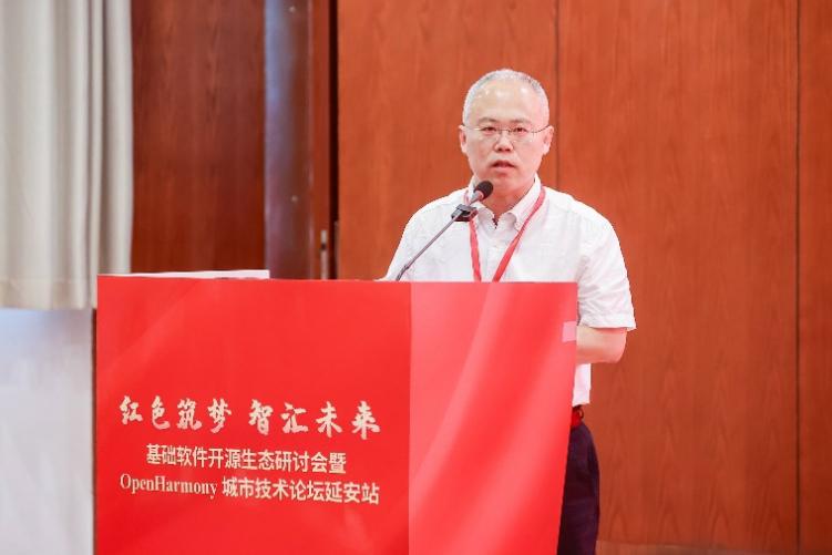 OpenHarmony项目群技术指导委员会主席陈海波致辞。陈海波表示,操作系统是信息产业之魂。万物智联为我国操作系统的发展提供了宝贵的新机遇,而开源又为信息科技领域注入了新的发展动能。OpenHarmony在此千载难逢的机会中诞生,对打造自主可控的国产操作系统、构建新的智能终端产业生态具有重大意义。希望大家以延安精神为指引,艰苦奋斗、开拓创新、勇挑重担,共同构筑起一个充满活力、富有成果的产学研协同平台,推动OpenHarmony的技术发展。