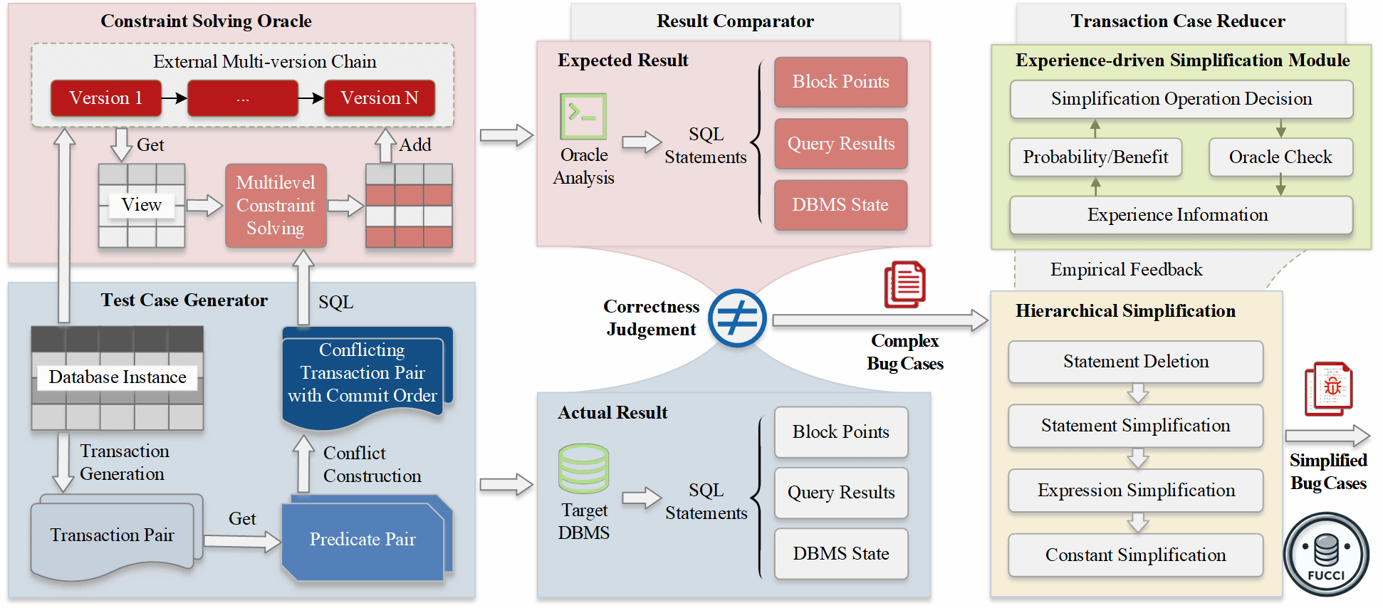在会议期间,李辉教授在分组报告中向参会人员介绍了论文《Fucci: Database Transaction Fuzzing via Random Conflict Construction and Multilevel Constraint Solving》工作,并在海报展示环节与来自世界各地的参会专家、员工进行深入交流和探讨。该论文提出了一种新颖的数据库事务模糊测试框架 Fucci,旨在提升数据库事务漏洞检测的效率与准确性。Fucci 在MySQL、MariaDB和TiDB等主流数据库管理系统(DBMS)上共发现 6 个全新事务管理漏洞 和 14 个已知漏洞,其中多个漏洞已被官方确认并修复,为数据库事务漏洞检测提供了重要的学术参考。