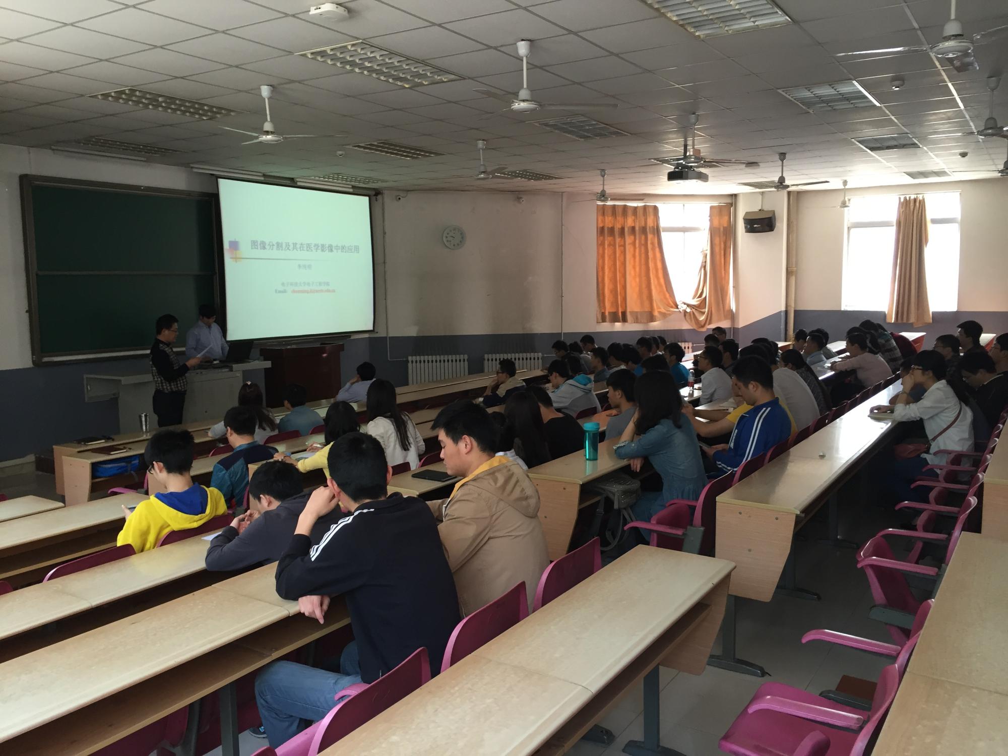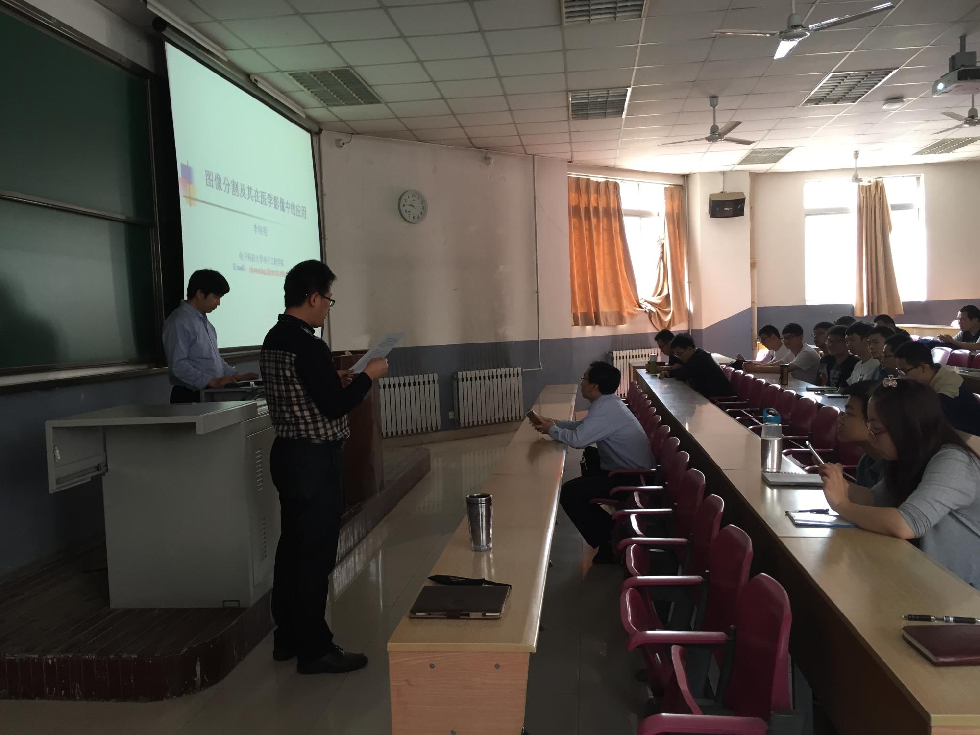 中,李纯明首先介绍了距离正则化水平集方法及其在图像分割中的应用,之后李教授分析了能够分割具有灰度不均匀性图像的水平集方法,此后又描述了能够同时分割和校正灰度不均匀性的能量极小化模型,最后介绍了基于多图谱和解剖学几何性质的大脑和心脏分割模型。李教授生动描述了水平集方法中数学公式下隐藏的物理含义,并通过视频演示解释了水平集方法的演化迭代过程。