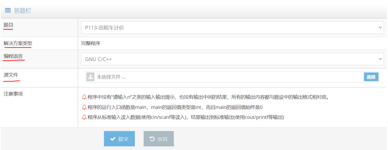 (2)完整程序:可以是C/C++源代码文件,选择源文件后提交。