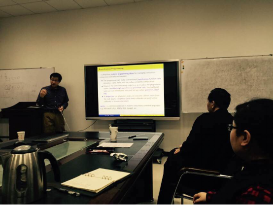 2016年12月2日上午,牛津大学计算机公司Luke Ong教授应邀来计算理论与技术研究所进行学术访问,在主楼4区203会议室作题为“Automatic verification of asynchronous concurrency and the shaped stack constraint”的学术报告。